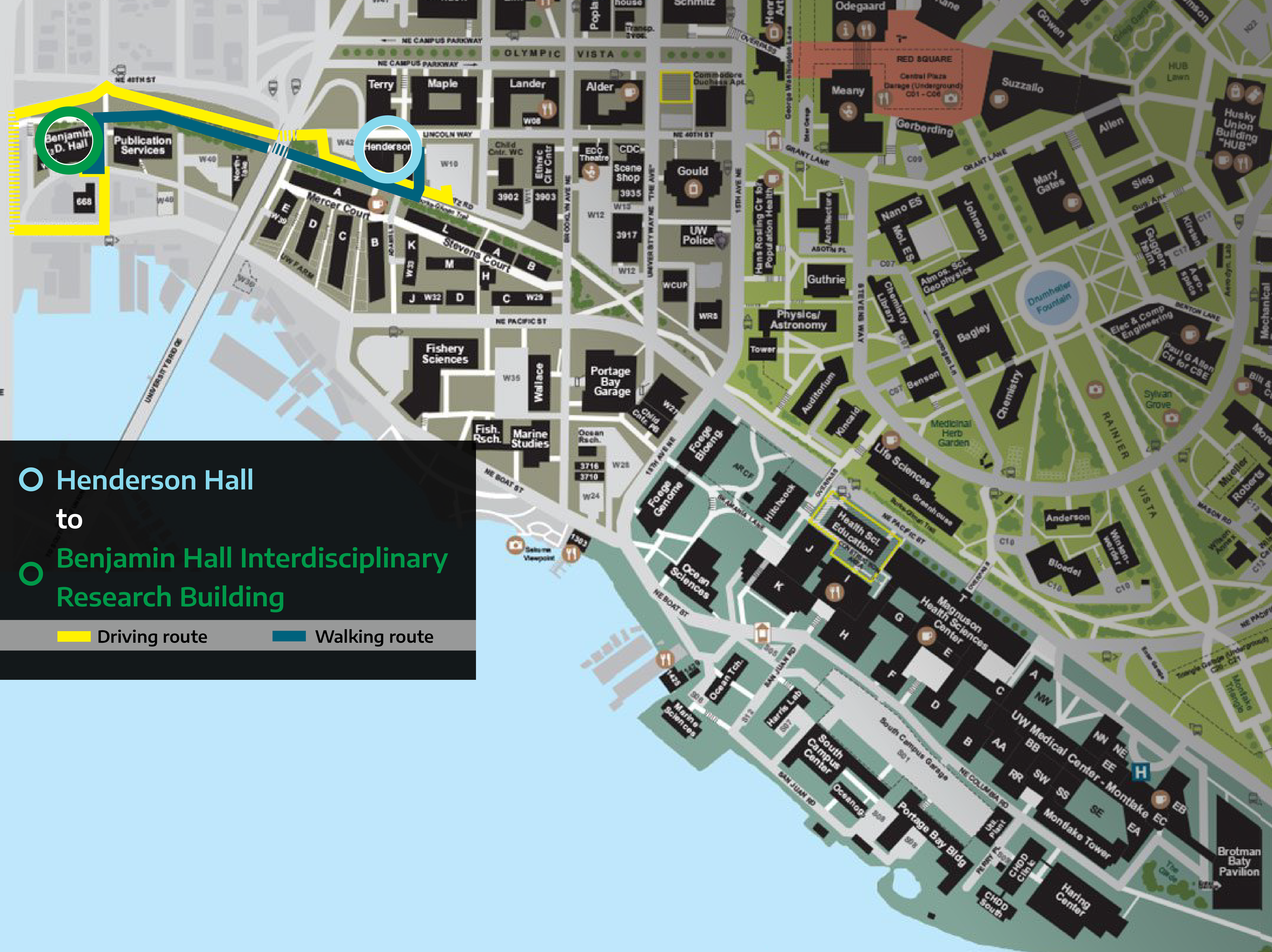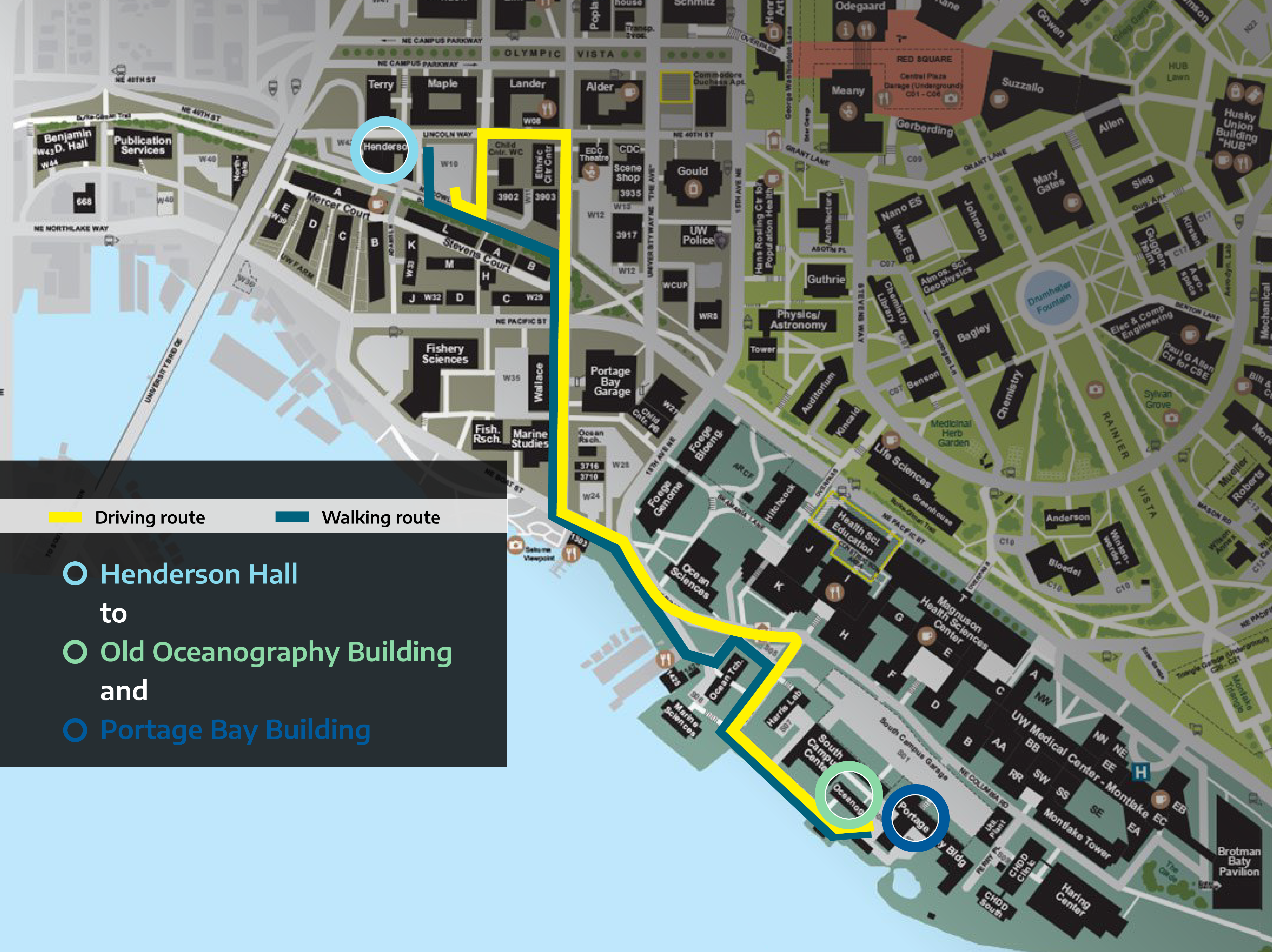 Directions from Henderson Hall to Oceanography and Portage Bay Buildings |