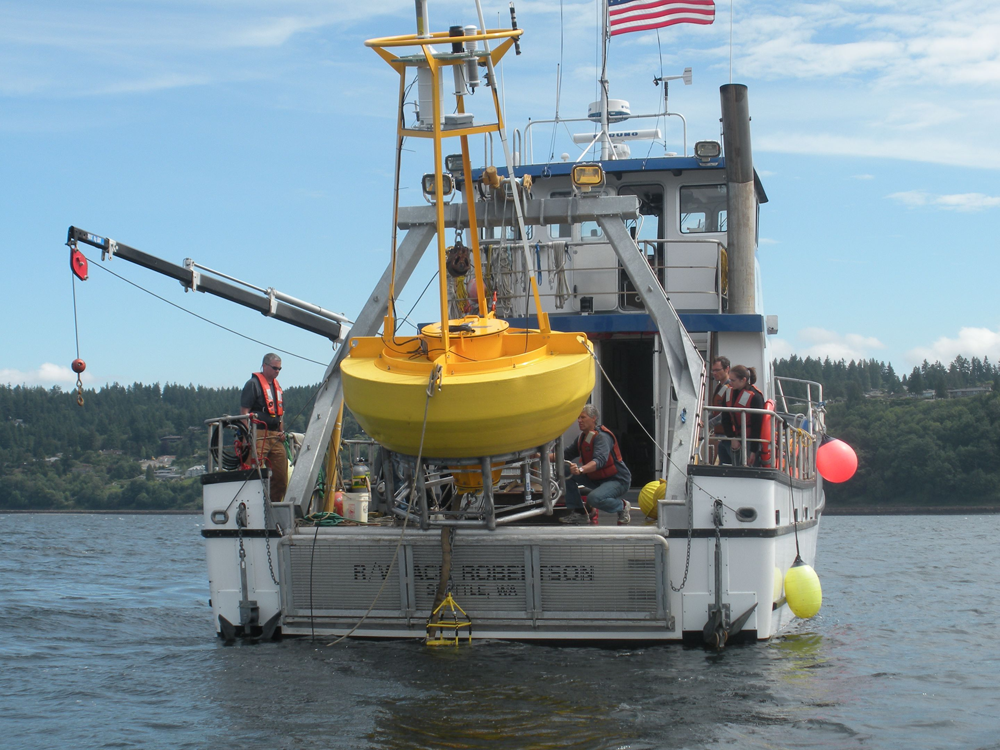 One major program being developed by the Laboratory is ocean observing system. APL-UW leads the regional efforts to field the Regional Coastal Ocean Observing System (RCOOS) consisting of: 1) networked data-collection platforms in Puget Sound and off the Washington and Oregon coasts; and 2) a data delivery system providing operational products such as temporal and spatial records and predictions of important marine variables. Funding sources have been NOAA, the Navy, and the Murdock Charitable Trust Foundation. A related scientific observatory, the Regional Scale Nodes, a component of the NSF Ocean Observatories Initiative, has given the Laboratory a significant role in wet-end engineering for this national effort. The goal is to develop and operate a cabled-to-shore network of ocean sensors in the northeast Pacific Ocean to provide continuous and long-term time series for the ocean science community. An initiative designed to expand the capabilities of the Laboratory includes programs in photonics, the science and technology of the study and application of light. The photonics program incorporates optics, laser technology, electrical engineering, materials science, and information storage and processing. APL-UW is working on novel photonic devices or systems for improved sensing and communication especially for medical and defense applications. Another expanding capability is research to address the biological-physical-acoustical coupling in the marine environment. This is leading, for example, to a better understanding of marine mammal behavior response to physical (e.g., climate) change, and tracking and monitoring tools for marine mammals. Additional expansions are in Arctic research and logistics, and the drive to respond to national needs for cyber security. Perhaps the Laboratory’s most visible expansion is in the physical space it occupies: a spread from the original Henderson Hall to over five buildings including the addition of new laboratories plus a new sea-going research vessel, the R/V Robertson, with advanced capabilities.