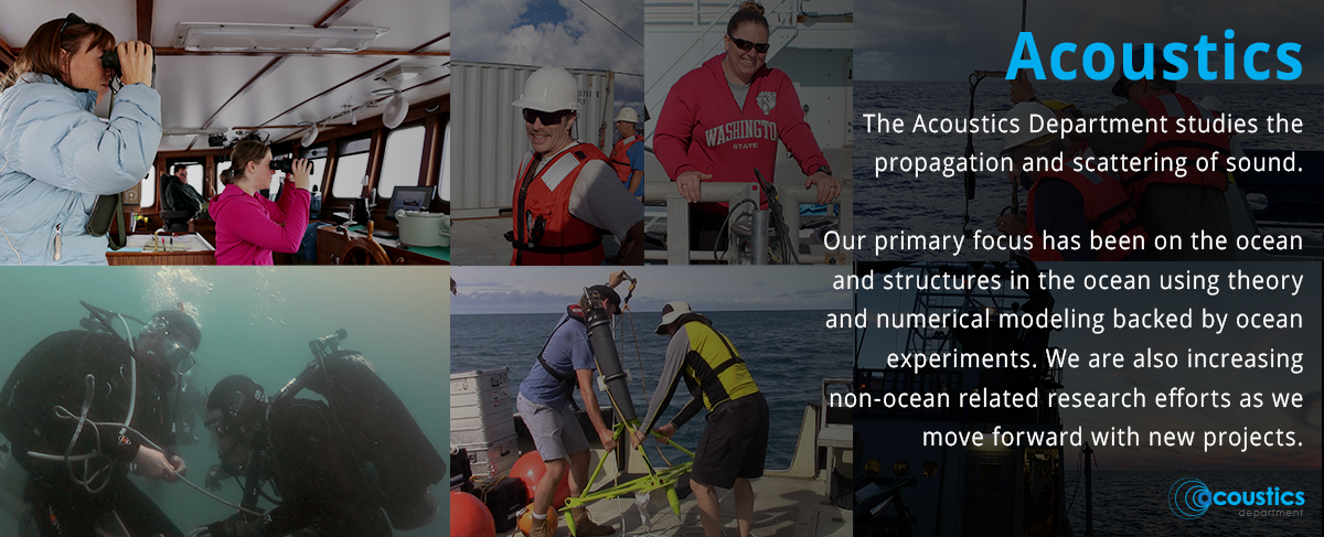 Our research spans the frequency range from a few hertz to hundreds of kilohertz. We seek to understand and quantitatively predict propagation and scattering (the 'forward' problem). These predictions require detailed knowledge of the environment and the material properties of targets. To measure the ocean environment, we collaborate with physical, biological, and geophysical oceanographers. A forward problem in environmental acoustics asks, 'Given the environment, what is the received signal?' High fidelity forward models then allow us to address the inverse problem, 'Given recorded acoustic data, what is the environment?' Solving the forward problem requires a combination of physical understanding, theoretical development, and analytic and numerical modeling. The inverse problem offers many challenges as well, since it may be nonlinear, non-unique, and sensitive to uncertainty in environmental properties and the details of the acoustic data. |