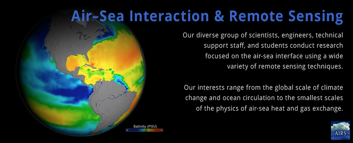 Our remote sensing tools span a wide range of scales from satellite remote sensing, to field experiments using surface and airborne platforms, and to laboratory experiments in wave tanks. Remote sensing instruments used include electro-optical sensors (microwave, infrared, and laser) and acoustic sensors (sonars and hydrophones). |